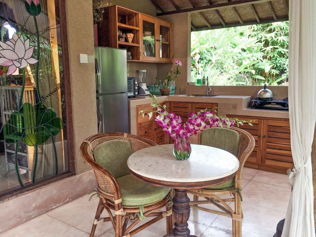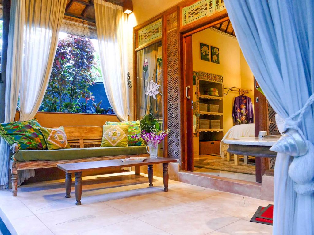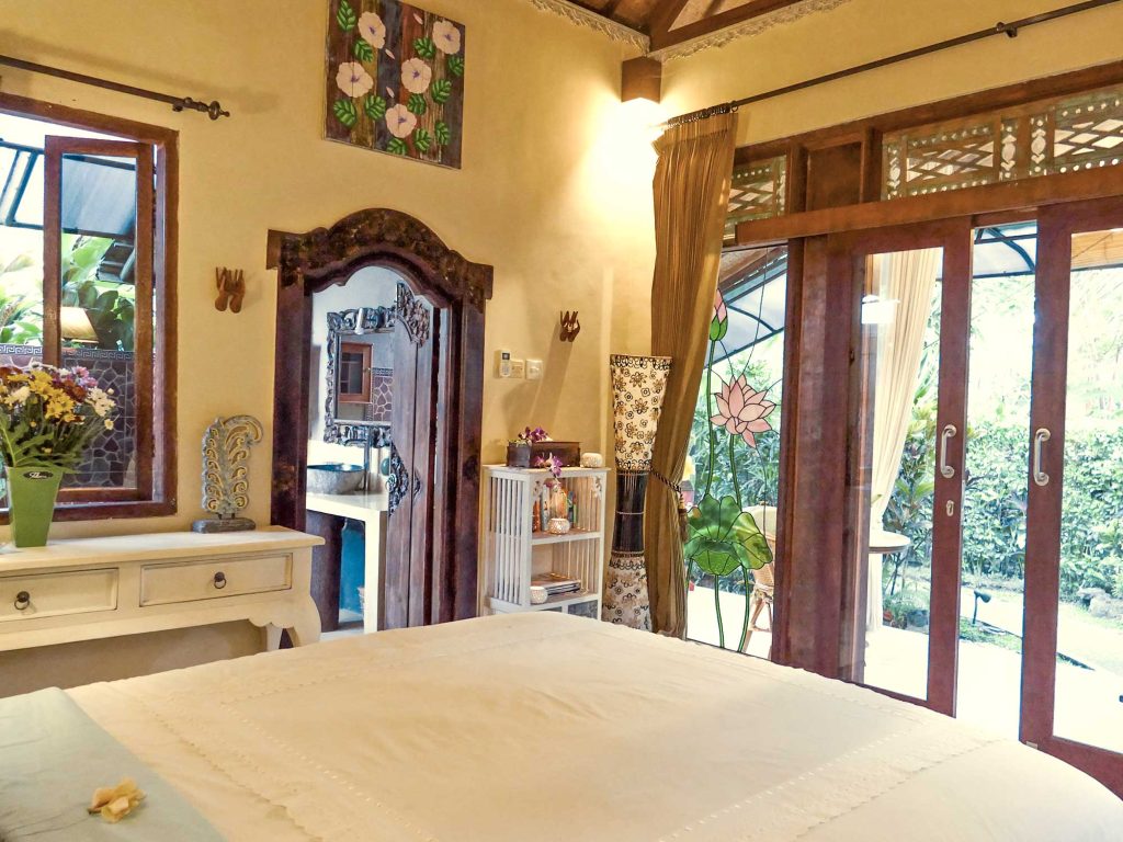 Accessible by foot through the tropical garden paths from Devi’s Place reception area, Lotus Cottage also offers off-street parking for guests. It’s a perfect little hideaway for a quiet individual seeking a simple, yet comfortable, stay in Ubud.