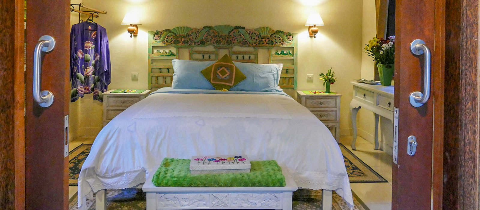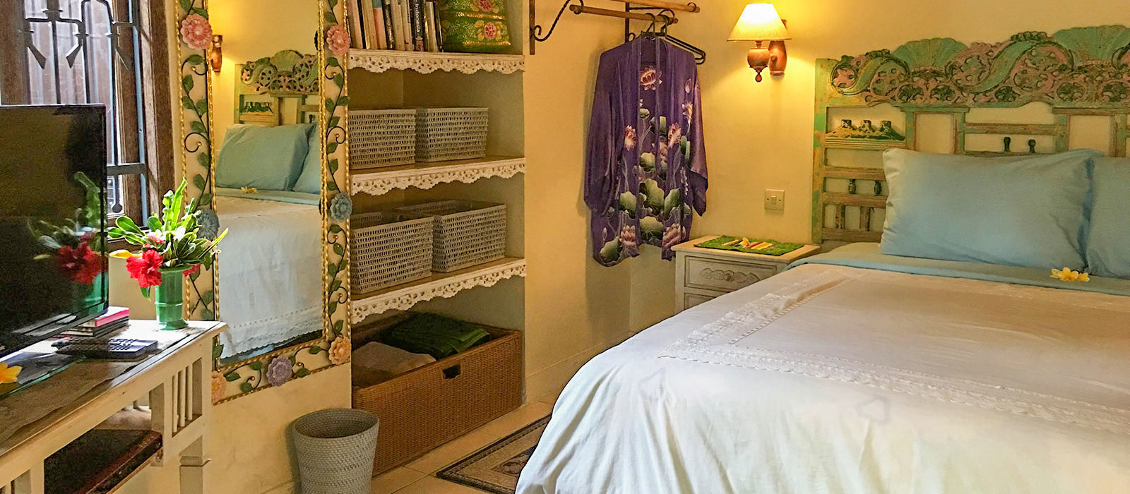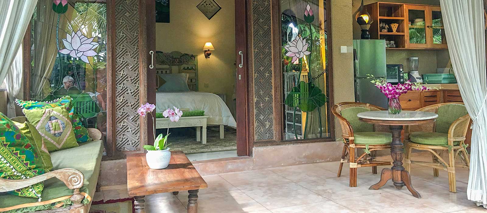 Accessible by foot through the tropical garden paths from Devi’s Place reception area, Lotus Cottage also offers off-street parking for guests. It’s a perfect little hideaway for a quiet individual seeking a simple, yet comfortable, stay in Ubud.