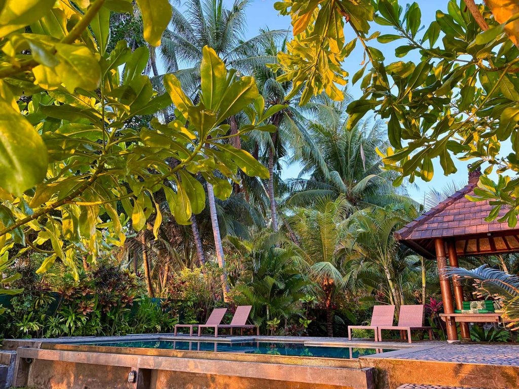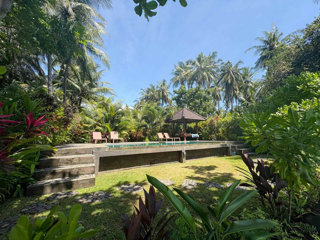 Our Beach House, located near the village of Tejakula on Bali’s North Coast, is a tranquil and peaceful retreat for those seeking to experience a more untouched side of the island. Situated in an absolutely private location facing east, on the edge of the Bali Sea, the house is surrounded by fruit trees, offering stunning views of the ocean. Watching the sunrise from the small pavilion by the private infinity pool at the front of the garden is an experience you’ll never forget. Devi’s Place Tejakula truly is paradise, now available for rental as a private house with a beautiful garden, infinity pool, and ocean views.